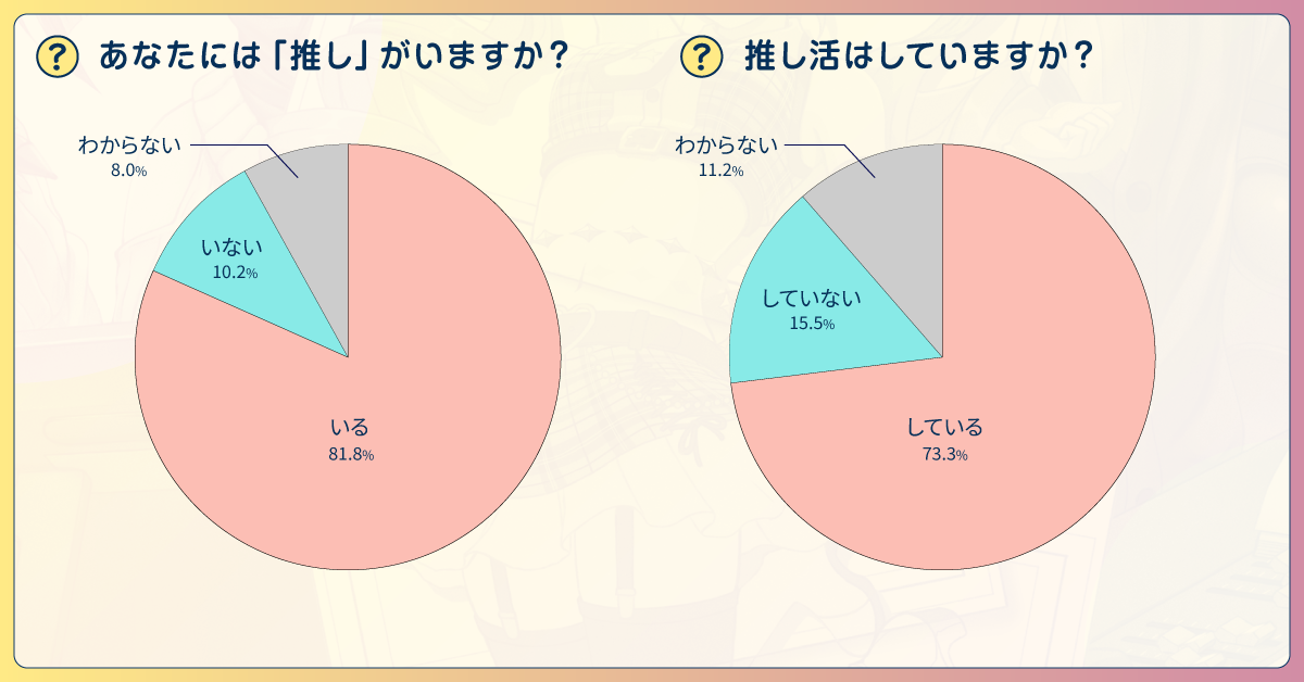「あなたには推しがいますか?」と尋ねたところ、「いる」との回答が81.8%となりました。
