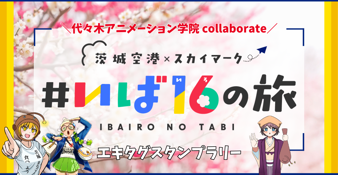株式会社代々木アニメーション学院(本社:東京都千代田区、代表取締役社長:橋本 大輝)は、茨城空港利用促進等協議会とスカイマーク株式会社(本社:東京都大田区、代表取締役社長執行役員:本橋 学) が実施するキャンペーン「茨城空港開港16周年『いば16の旅(いばいろのたび)』」において、デジタルスタンプラリー企画で使用されるイラストを制作・提供したことをお知らせします。
